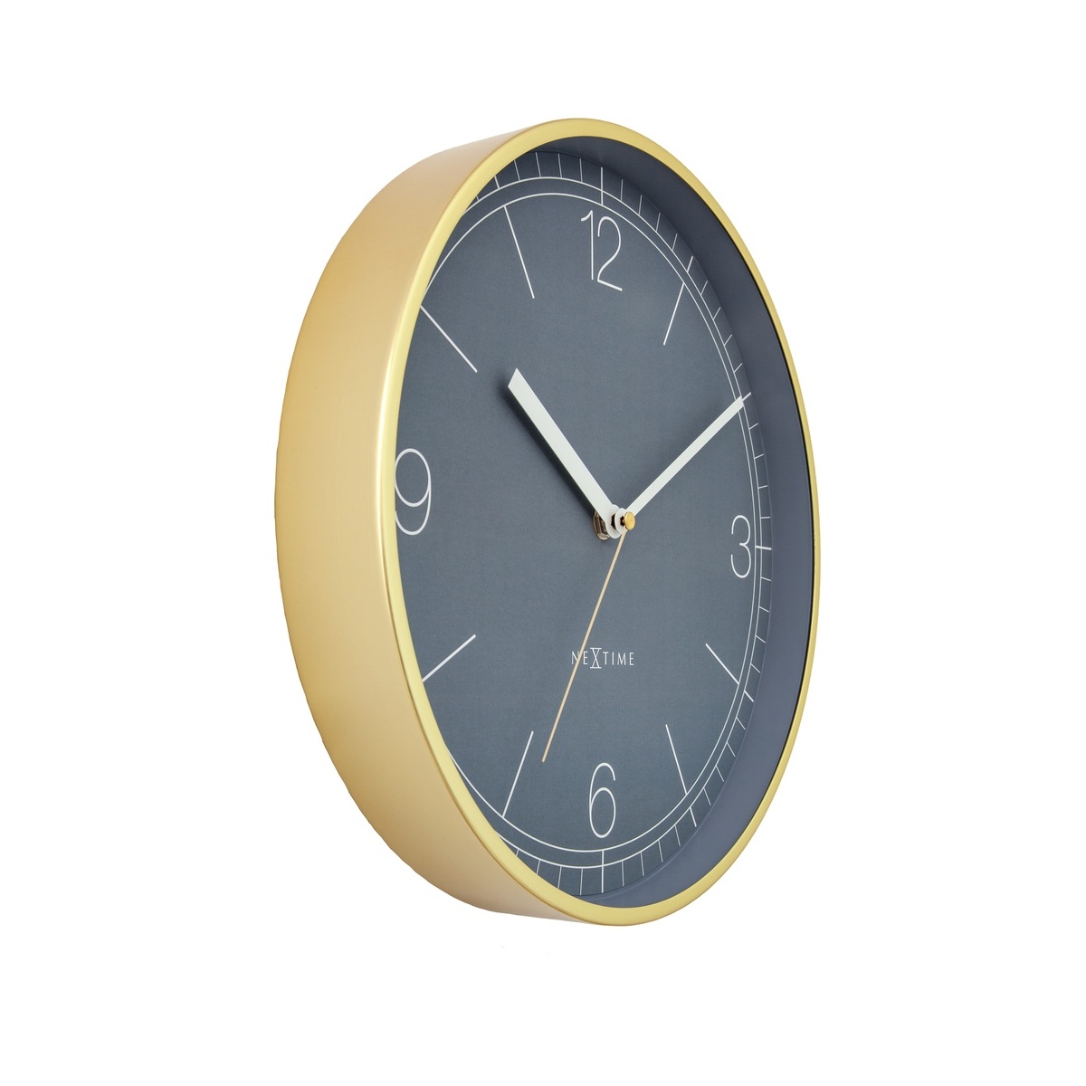 Zegar NeXtime 'Nova’ to elegancki zegar ścienny o średnicy 30 cm, który łączy nowoczesny design z subtelną nutą luksusu. Zegar umieszczony jest w metalowej obudowie w kolorze szczotkowanego złota, dzięki czemu stanowi stylowy i wyrafinowany element dekoracyjny pasujący do wielu aranżacji wnętrz.