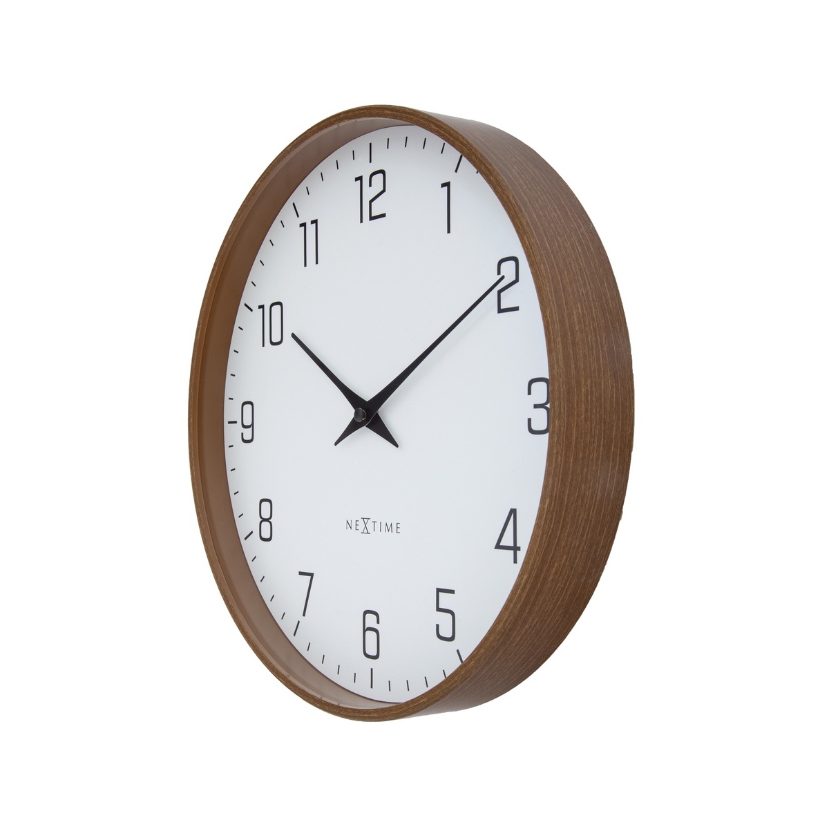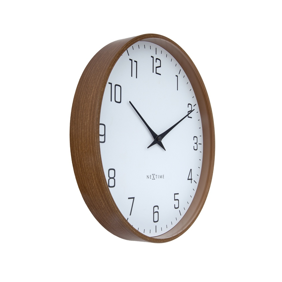 Zegar NeXtime 'Lyra’ to stylowy zegar ścienny o średnicy 30 cm, który wyróżnia się prostym i eleganckim designem. Obudowa zegara wykończona jest w ciemnym wzorze drewna orzechowego, co nadaje mu ciepły, naturalny charakter i sprawia, że doskonale komponuje się z nowoczesnymi oraz klasycznymi wnętrzami.